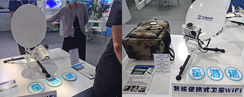 天海世界“星游通”便攜式衛(wèi)星上網(wǎng)設(shè)備也是展會上的一大亮點,超便攜的集成設(shè)計,讓很多觀眾贊嘆不已,設(shè)備裸機重量不超過7公斤,可背負可車載,一鍵對星,無論走到哪里,都可以隨時建立衛(wèi)星WiFi,為應(yīng)急通信保障、野外作業(yè)、戶外運動、直播等場景提供了完美的網(wǎng)絡(luò)解決方案。因此也受到的展會觀眾的極大關(guān)注。